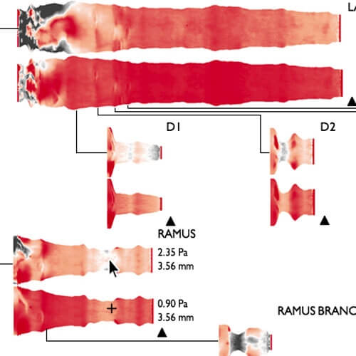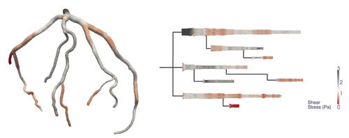 HemoVis takes data from patient-specific blood flow simulations, combined with traditional imaging data, and visually displays a tree diagram of the arteries with areas of disease highlighted to assist in diagnosis.