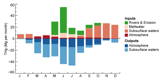 When the Harvard team adapted it for their Arctic mercury simulations, the only adjustment that could explain the spike in summertime concentrations was the incorporation of a large source to the Arctic Ocean from circumpolar rivers. This source had not been recognized previously.