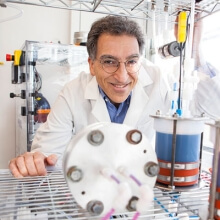Shriram Ramanathan's laboratory setup for testing solid-oxide fuel cells. (Photo by Caroline Perry, SEAS Communications.)