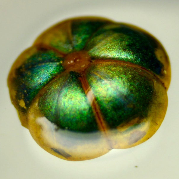 The so-called “bastard hogberry,” shown here floating in water (which changes its apparent color), has inspired a new type of photonic fiber. (Image courtesy of Peter Vukusic.)