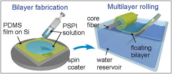 The researchers at Harvard developed a unique method of producing the photonic fibers; they believe it can be scaled up for industrial fabrication. (Image courtesy of Mathias Kolle.)