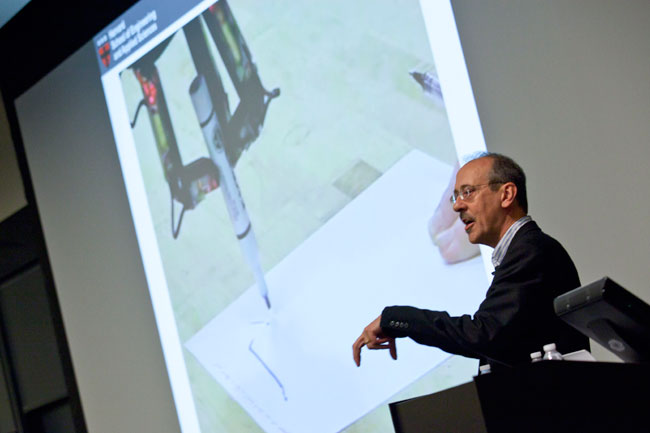 Robert D. Howe, Abbott and James Lawrence Professor of Engineering at Harvard SEAS, describes the state of the art of robotic grasping. (Photo by Eliza Grinnell, SEAS Communications.)