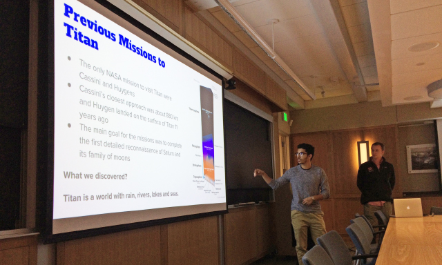 Omar Embaby, S.B. ’18, a mechanical engineering concentrator, and his team set their sights on Titan, the largest moon of Saturn, in the hopes of mapping the molecular species in its atmosphere. Because this moon shows striking similarities to early Earth, mapping molecular species at different altitudes could give scientists insights into the development of life on our planet, Embaby explained.