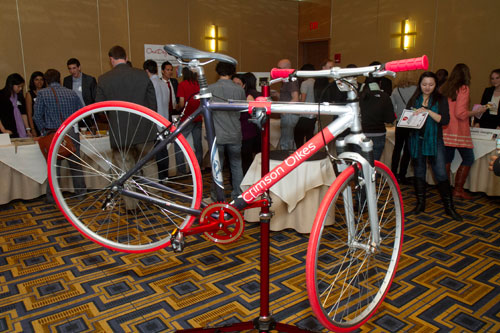 A bike-sharing program was one of 25 semifinalist projects on display at the showcase and awards reception of the Harvard College Innovation (I3) Challenge. Photo by Jon Chase, Harvard News Office.