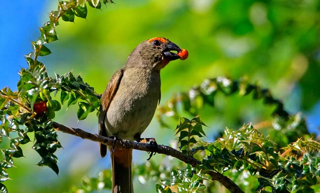 The lesser Antillean bullfinch (Loxigilla noctis), which has the smallest beak of the genus, specializes in feeding on small seeds and fruits. (Photo by Natally Klaric.)