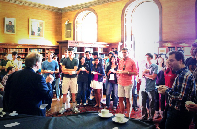 The Xfund has hosted about a dozen Experimental Teas at Eliot House—intergenerational gatherings where students, faculty, aspiring entrepreneurs, and successful business-builders mingle to discuss a single bold question: “What can plants teach us about renewable energy?” “How will computational modeling change how we view the economy?” “How can technology explain law and uncover the inner thinking of judges?” More than 500 people have participated in these events.