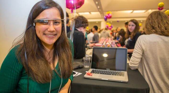 SLIDESHOW: Emilie R. Wong ’17, a literature student at Harvard Extension School, created a music visualization tool using Google Glass. (Photos by Eliza Grinnell, SEAS Communications.)