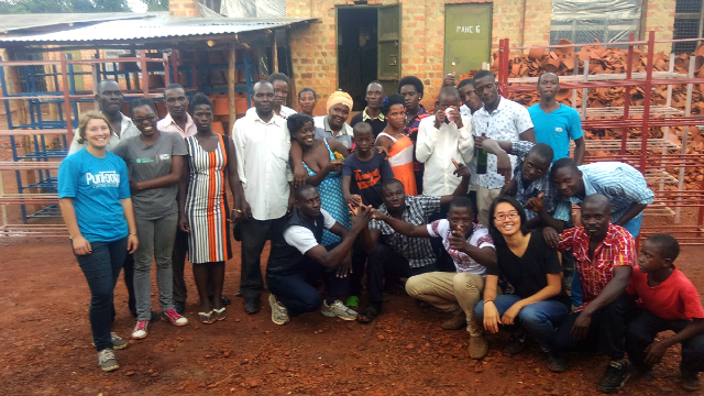 Kathy Ku (third from right) with SPOUTS team members at the organization's Ugandan production facility. (Photo provided by Kathy Ku.)