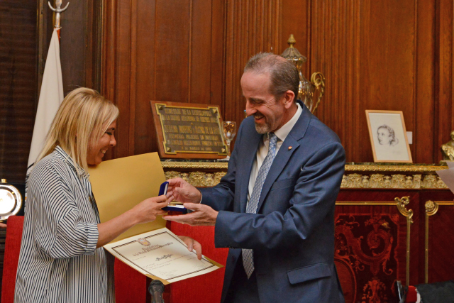Doyle receives the Huéspedes de Honor de la Ciudad recognition from Argentinian Congresswoman Claudia Canciano at the Palace of the Argentine National Congress in Buenos Aires.