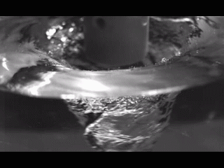 In this system, called immersion Rotary Jet-Spinning (iRJS), when the polymer solution shoots out of the reservoir, it first passes through an area of open air, where the polymers elongate and the chains align. Then the solution hits a liquid bath that removes the solvent and precipitates the polymers to form solid fibers. Since the bath is also spinning — like water in a salad spinner — the nanofibers follow the stream of the vortex and wrap around a rotating collector at the base of the device.