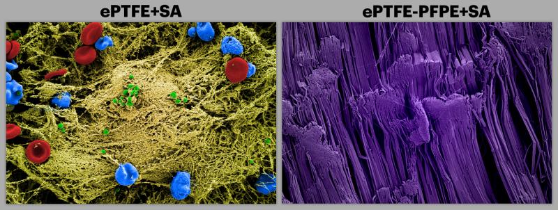 “SLIPS coatings yielded extremely favorable responses in vivo: they resisted infection by bacteria and were associated with considerably less infiltrating immune cells and inflammatory abscesses than non-coated ePTFE,” said Chaikof, who is a Wyss Institute Associate Faculty member, Chairman of the Roberta and Stephen R. Weiner Department of Surgery and Surgeon-in-Chief at BIDMC.