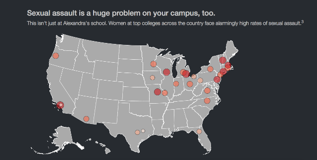 The website the students created for CS 171, “Through the Eyes of a Survivor,” combines statistics, data visualizations, and narratives to help individuals better understand the epidemic of sexual assault on American college campuses.