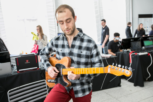 While other projects tackled thorny issues like helping immigrants access legal services or monitoring air pollution in the Amazon rainforest, some were purely for fun, like the electric guitar built by Paul Lisker, A.B. ’17, a computer science concentrator, for Computational Music Theory (AM 141).