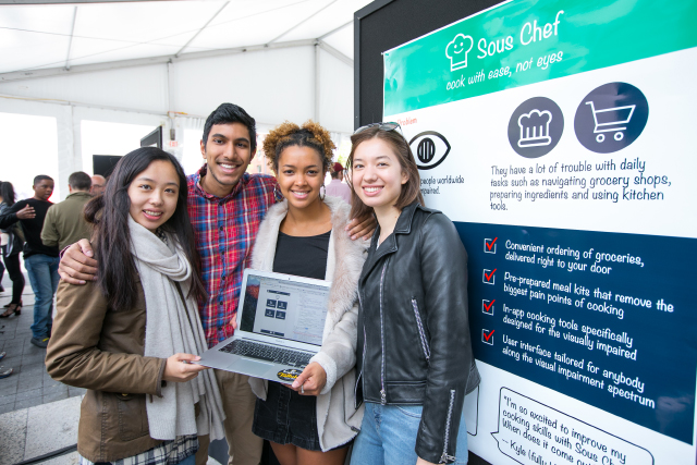 Theirs was one of many featured projects that sought to solve problems. For instance, four students created a mobile app for Design of Useful and Usable Interactive Systems (CS 179) to help visually impaired individuals follow recipes and prepare meals.