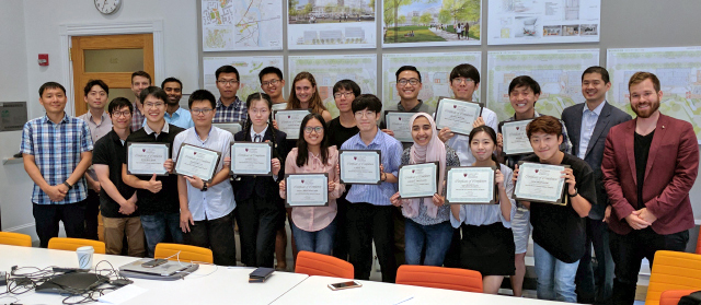 The Green Energy Materials Summer Research Program brought together 15 students from Harvard, Ulsan National Institute of Science and Technology (UNIST) in Korea, and Jiao Tong University in China, for a thorough study of solar energy. (Photo by Adam Zewe/SEAS Communications.)