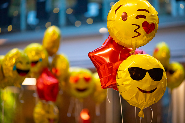 Students, and emoji balloons, were all smiles at the annual CS50 Fair. (Photo by Richard Tong/Harvard SEAS)