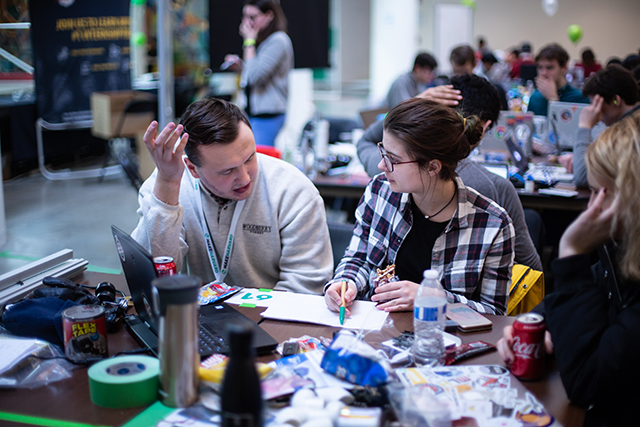 Students brainstorm potential solutions during MakeHarvad. (Photo by Annie Schugart/SEAS Communications)