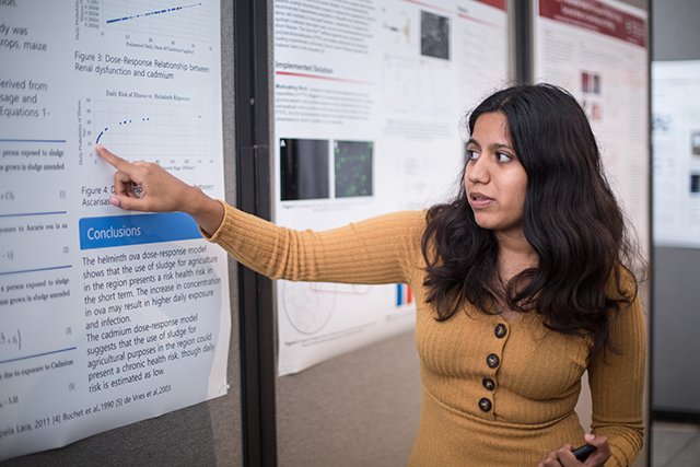 Leticia Ortega, S.B. ‘19, an environmental science and engineering concentrator, showcased the culmination of her thesis research on modeling the public health impact of using agricultural sludge in Mexico City.