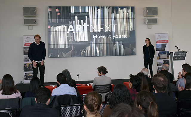 Siegelmann pitches artnext at MIT's Creative Arts Entrepreneurship Challenge, where the startup placed third. (Photo provided by Julian Siegelmann)