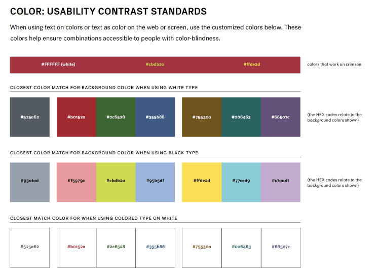 When designing a presentation that will be viewed solely on screen (phone, tablet, desktop, projection, web), use the RGB values listed for the color, and set the document to an RGB color space. For development on the web, use the HEX value listed for the color.